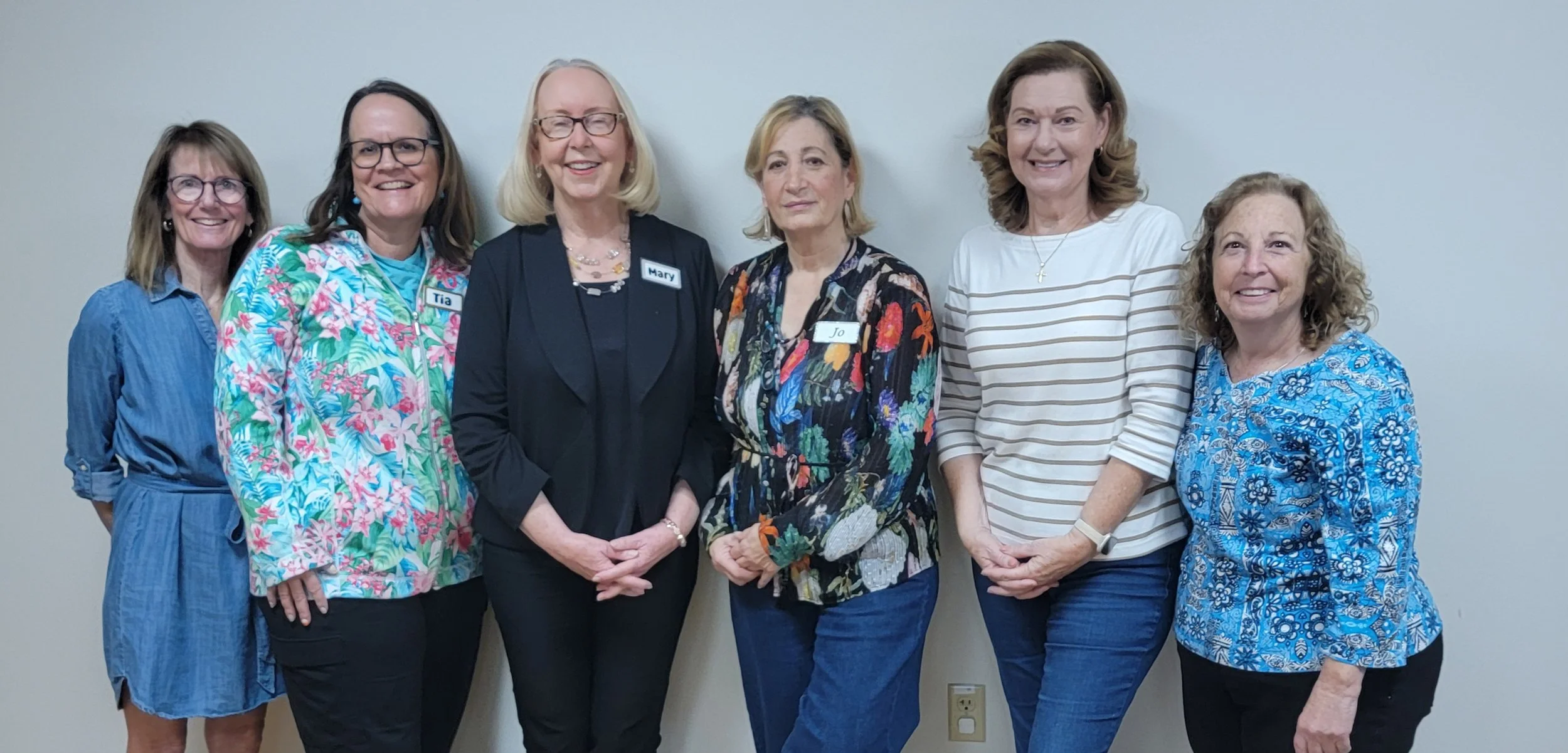 Left to Right: Jeanne Valente (Co 1st VP), Tia Jamieson (Secretary), Mary Banks (President), Jo Perry (Treasurer), Carla Prescott (Co 1st VP), Lori Rubin (2nd VP)